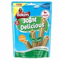 Bakers Joint Delicious with Chicken (Size: Small)?Bakers Joint Delicious with Chicken is the tasty way of providing your dog with support to help joint mobility and health. Containing glucosamine to help keep joint healthy and mobile and also vitamins E and C to help maintain flexibility, the Bakers Joint Delicious is the perfect way of providing a tasty treat that packs a healthy punch! The soft chewy treat also has a juicy chicken flavoured meaty centre to keep your dog chomping away, right down to the last bite. Pack contains 7 sticks. Ingredients: